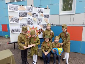 В программу мероприятия вошли песни, танцы, стихи о войне. Память о погибших героях войны почтили минутой молчания. В завершение мероприятия сотрудники детского сада, совместно с детьми приняли участие в шествии Бессмертного полка.