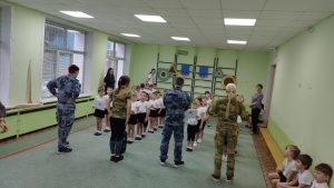 Росгвардейцы провели с ребятами спортивную эстафету и конкурсы, инспектор ВАИ напомнил о правилах дорожного движения для юных пешеходов, в игровой форме сотрудники ОМОН «Вал» провели зарядку для дошколят.